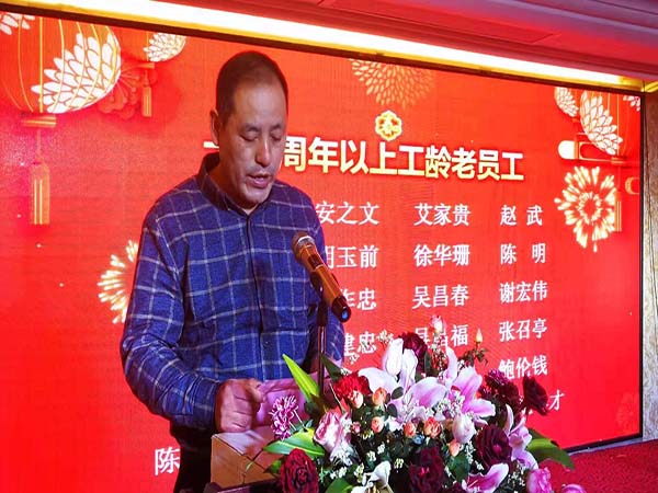 為加強企業文化建設,表彰先進,樹立典型,弘揚“愛崗、敬業、奉獻”精神,不斷增強企業向心力和凝聚力,營造學先進、趕先進的良好氛圍,進一步深化“同創共享、鑄造輝煌”的企業精神,年會上公司領導表彰了2019年度優秀員工、優秀班組及優秀集體等模范,并給以上模范進行了頒獎儀式。同時優秀員工代表俞曉偉同志、十一年以上工齡的員工代表陶方云同志分別作了發言。